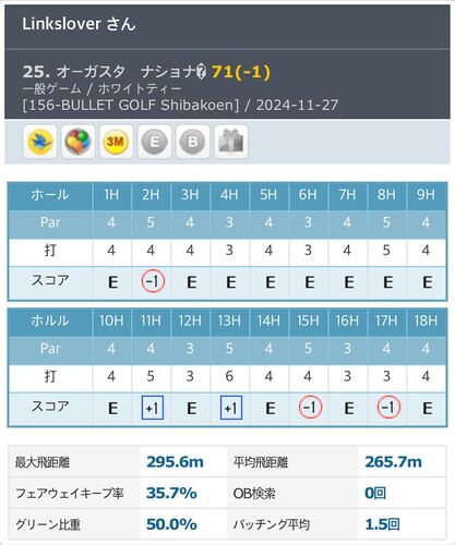 最近の目標だったのは,シミュレーションのラウンドでオーガスタナショナルでアンダーパーを出すこと。1か月前に近いところまで行ったんだけど――16番終わって2アンダーだけど17番と18番でともにボギーでイーブンパー――,今日ようやくそれが達成できた。 オー…